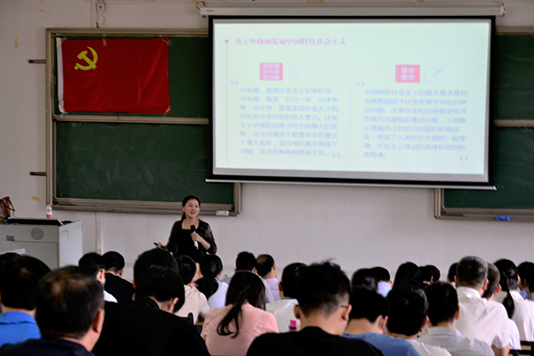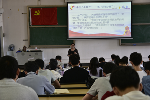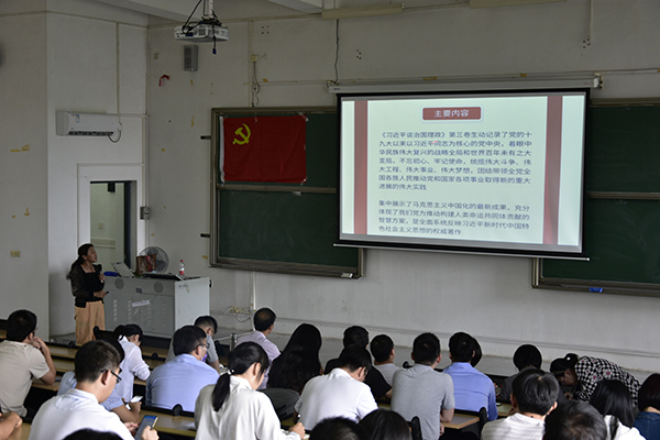 在教学楼6E308组织开展《习近平谈治国理政》(第三卷)集中学习研讨会,邀请了马克思主义学院副教授谢敏老师进行宣讲,会议由学院党委书记李纠主持,学院全体教职工及学生党员参加会议。