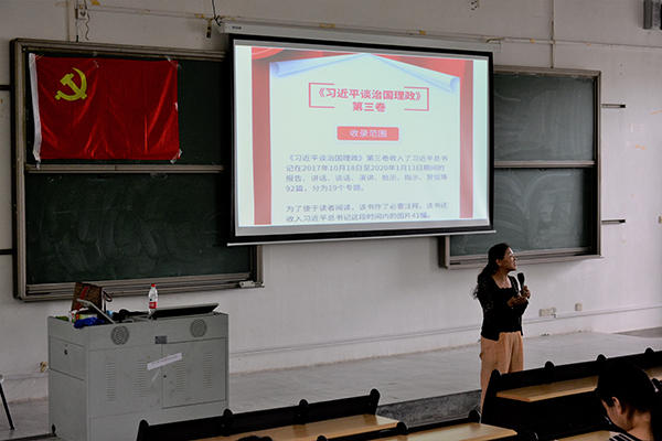 随后,谢敏老师向党员们介绍《习近平谈治国理政》(第三卷)中的方法论。谢敏老师结合当下世界格局讲述我们应如何将《习近平谈治国理政》(第三卷)中的方法论学以致用,她强调道:“《习近平谈治国理政》(第三卷)中的方法论蕴含着丰富的科学思想方法和工作方法,不仅对国家的治理问题起着重要的作用,而且为我们学习工作上的问题都树立了优秀的解决典范。”