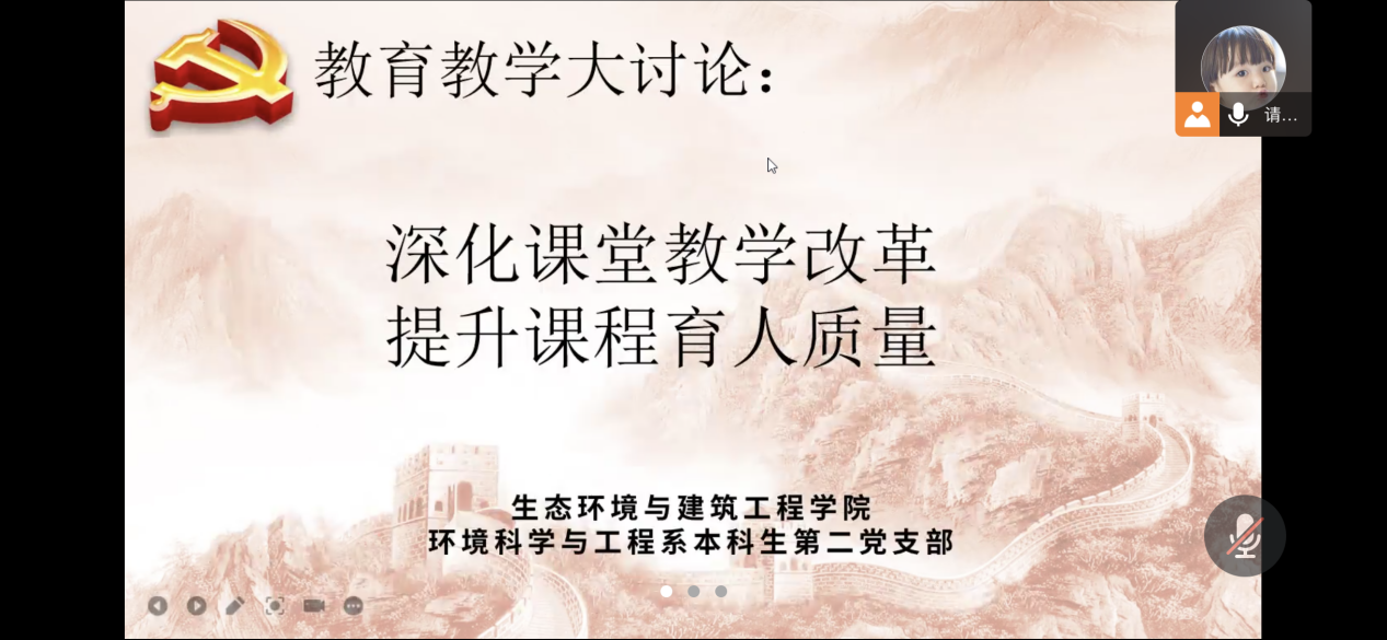环境科学与工程系本科生第二党支部开展了“深化课堂教学改革 提升课程思政质量”主题党日活动。会议由党支部书记张媚老师主持。