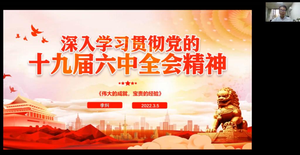 党委书记李纠以《深入学习贯彻党的十九届六中全会精神——伟大的成就,宝贵的经验》为题,在线上讲授了新学期“思政第一课”,2020级环境工程1、2班和自动化4班,共96位同学参与了线上课堂。