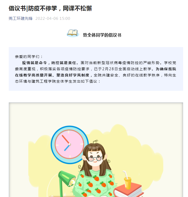 在教育教学大讨论环节,各位党员积极思考,主动献言献策,并结合自身经验和判断分别提出了许多宝贵的意见。教师结合自身的教学科研工作,展开了研讨交流,分享了学习体会。学生党员结合疫情下的线上学习,提出了学习存在的问题和挑战,同时也发表了线上学习的一些看法,并通过“新青年”党建工作室发出了线上自律学习的倡议书。