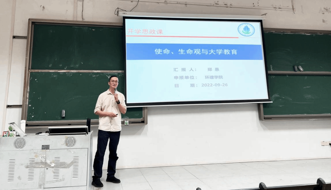 院长郑愚教授在教学楼6E307为2021级环境科学1 班和2021级道渡工程1班学生讲授新学期“思政第一课”。授课题目是《使命、生命观与大学教育》。