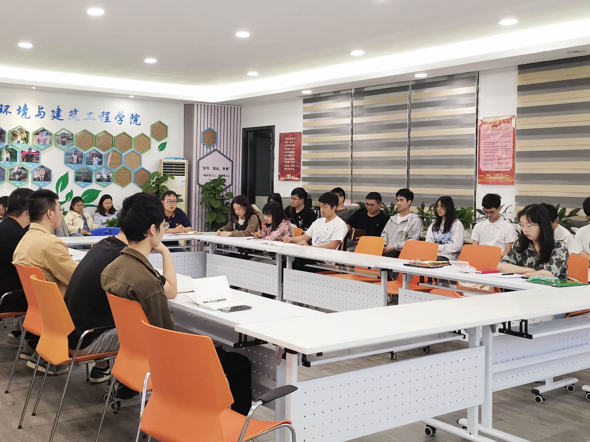 研究生第一党支部在综合实验楼12G401开展以“学习贯彻习近平新时代中国特色社会主义思想主题教育”为主题的党日活动,活动主要以支部党员座谈会的形式展开。