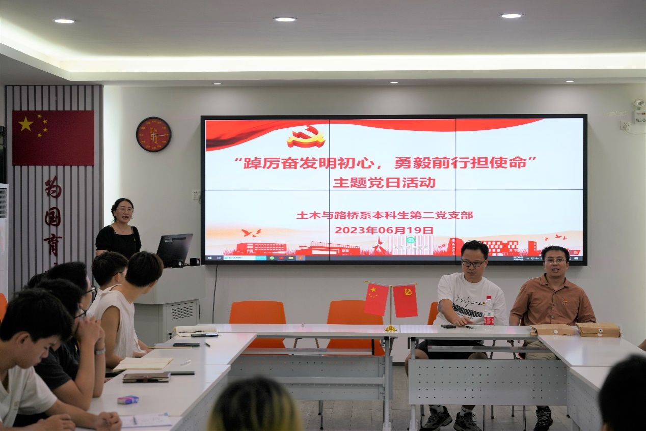 土木与路桥工程系本科生第二党支部全体党员开展“踔厉奋发明初心,勇毅前行担使命”主题党日活动。支部书记苏朗主持本次活动。