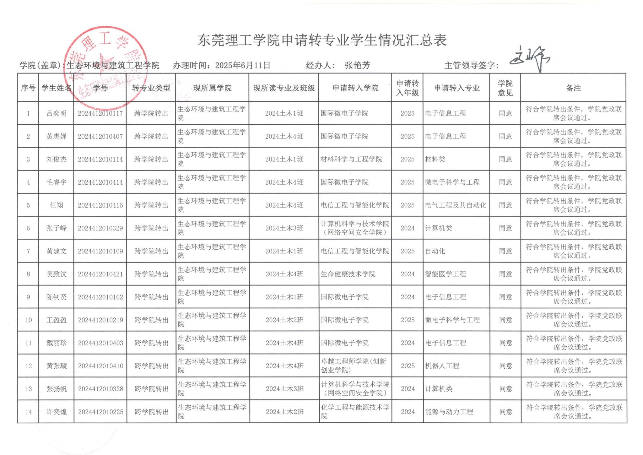 2025年申请转专业学生(转入)审批结果