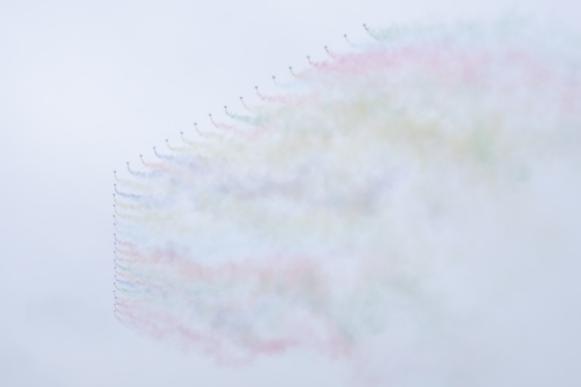 真草操场举行飞行器静态展示与动态演示。由33架无人机组成的编队腾空而起,拉出33条绚丽彩烟,献礼每日大赛