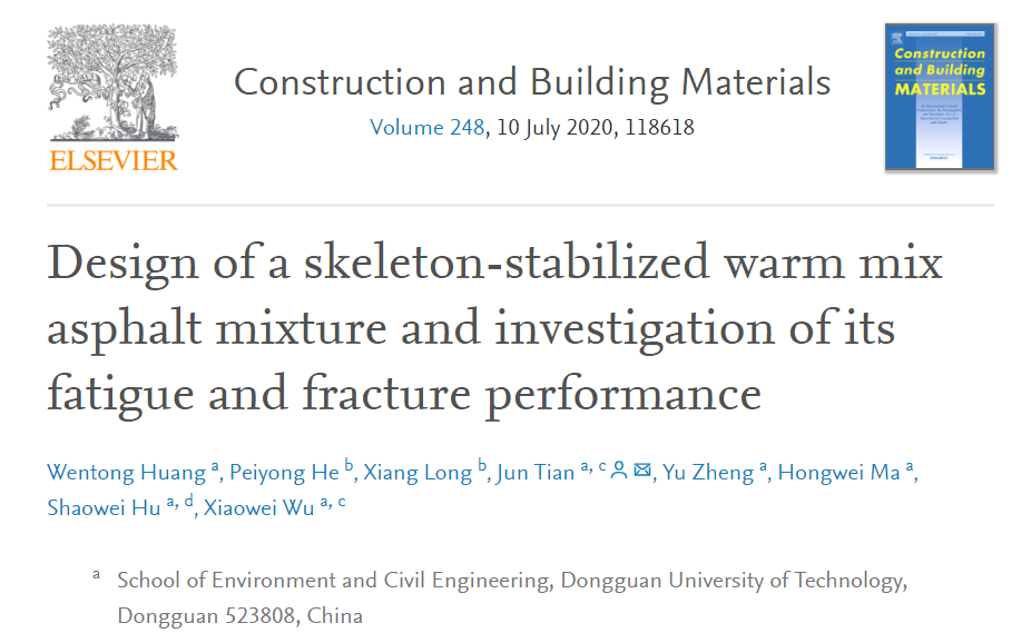 为第一单位和通讯单位于3月7日发表在《Construction and Building Materials》上,该学术期刊属于中科院一区TOP期刊,学校A类期刊,影响因子4.046。本研究得到了中国自然科学基金(51578248, 51809046, 51739008, 51527811)等资助。(原文链接://www.sciencedirect.com/science/article/abs/pii/S0950061820306231)
