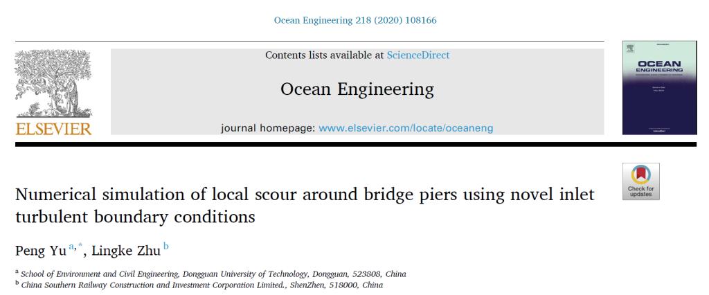 为第一单位,喻鹏博士为第一作者和通讯作者发表在中科院大类一区TOP期刊《Ocean Engineering》,//doi.org/10.1016/j.oceaneng.2020.108166,中国铁建华南区域总部投资公司铁建南方工程部朱玲可参与该项研究,本研究得到了国家自然科学基金(52008106),东莞理工博士科研启动基金(GC300501-130),国家重点研发计划(2019YFC1511000)和广东省普通高校创新团队项目(2019KCXTD013)等基金的资助。相关成果还在美国土木工程协会(ASCE)旗下权威海洋土木类期刊《JOURNAL OF WATERWAY PORT COASTAL AND OCEAN ENGINEERING》(中科院3区)发表。