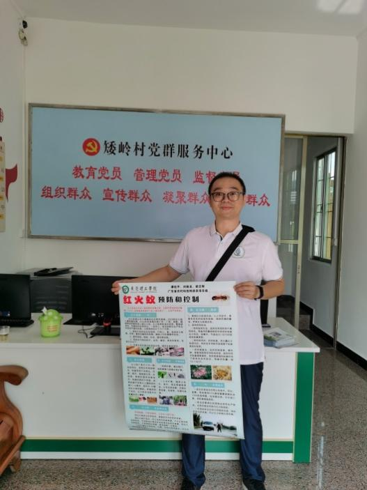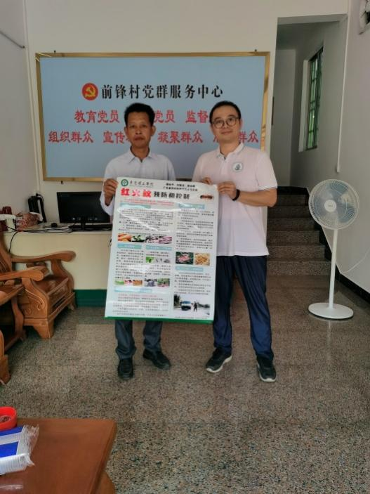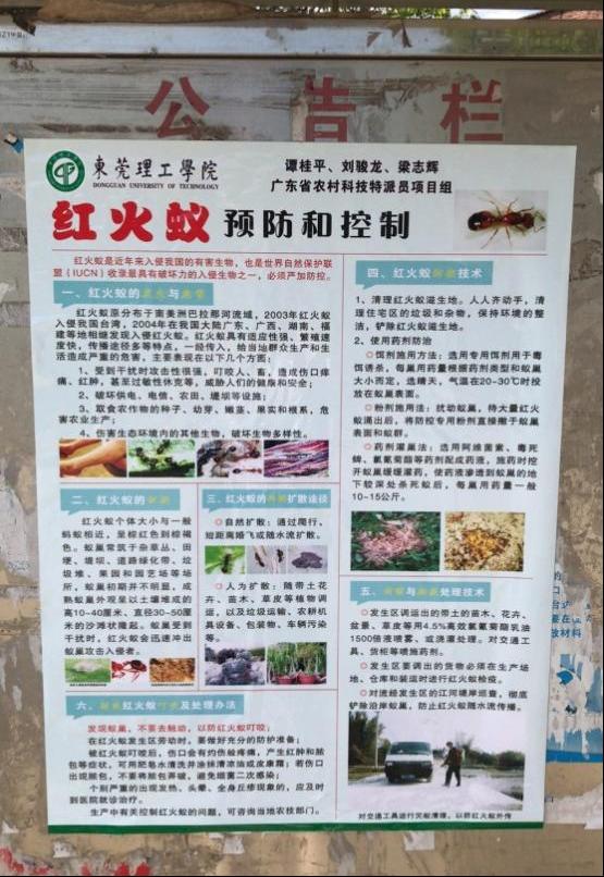 2021年10月3日至5日期间,每日大赛 的广东省农村科技特派员谭桂平博士,到对接的云浮市云城区前锋镇前锋村、矮岭村和思劳镇云贡村,开展红火蚁防治知识宣传,并向各村委负责人赠送宣传海报共计70份。这些海报被贴在各自然村以及学校的宣传栏,起到很好的宣传教育效果。