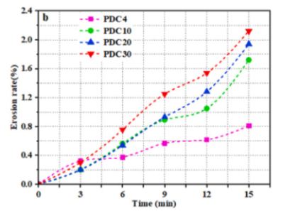 研究背景:随着油气勘探开发难度的增加,超深井、水平井、大位移井对复杂地层条件的精度掌握提出了更高的要求。转子是泥浆脉冲器的重要部件,通常由硬质合金制成,在泥浆冲刷作用下,转子会受到严重的冲蚀磨损,转子冲蚀会降低脉冲信号功率和传输速度。如何提高转子抗冲蚀性能是目前需要解决的问题。聚晶金刚石复合片(PDC)是由金刚石微粉与硬质合金基体在高温高压下烧结而成的一种新型功能材料,具有高硬度、高耐磨性和冲击韧性等特点,是制造刀具、钻头等耐磨工具的理想材料。目前,应用于转子强化的PDC冲蚀磨损机理与冲蚀演化规律尚未揭示,缺乏PDC强化转子耐冲蚀性的理论指导。