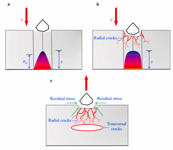 目前缺乏PDC增强转子冲蚀磨损演化规律的理论指导,本研究基于冲蚀损伤机理,创新性提出金刚石粒度和冲击角的PDC切削-裂纹损伤模型,该研究模型可以很好的预测不同金刚石粒度和冲击角变化的PDC冲蚀率的演化规律。