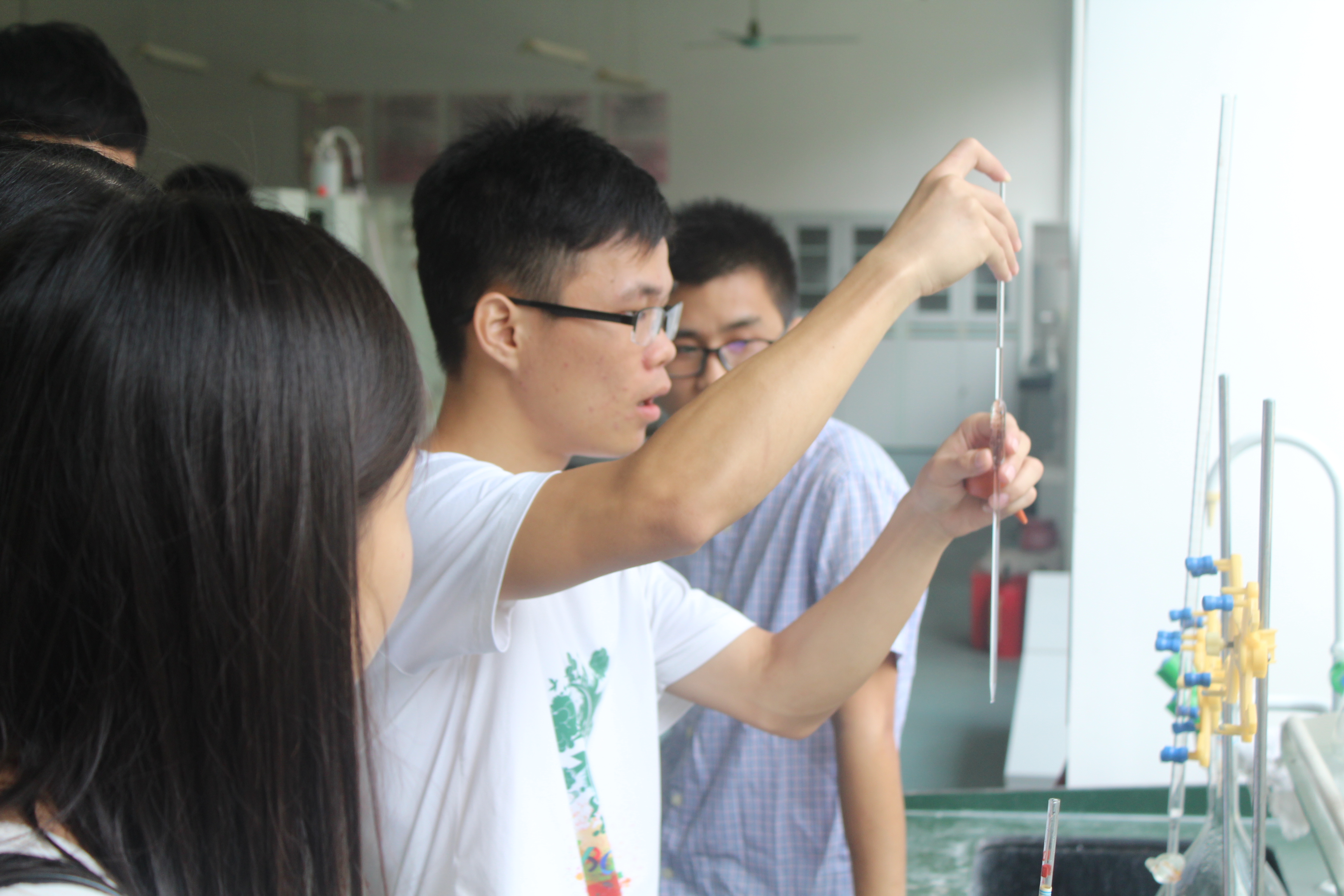 本次参观的主要地点是化工大楼12K101-103的环境污染控制实验室,和12E102-105的化工原理实验室。实验室内,助理耐心地为参观者讲解着各类仪器,带领参观者们感受化学的奥妙、实验的乐趣。