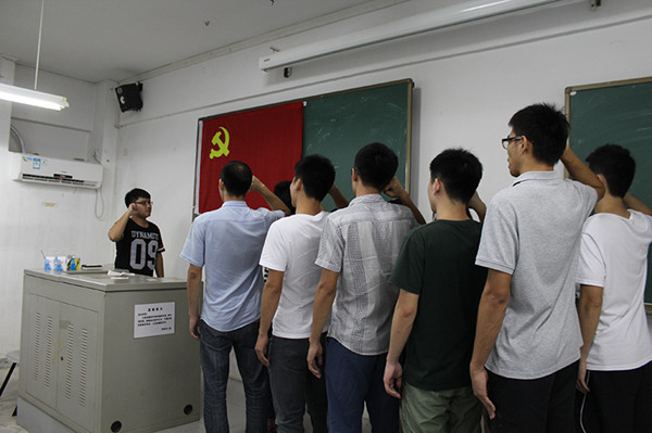 学生党支部组织11名新接收的预备党员在6D403课室隆重举行庄严而神圣入党宣誓仪式。宣誓仪式由环境、应化党支部书记邓日威主持。