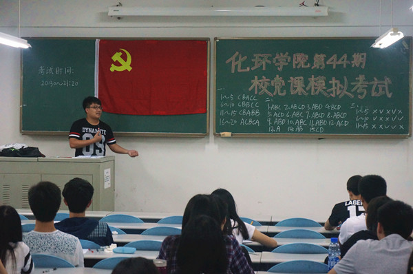 学生党支部组织第44期发展对象于6D403课室进行校党课模拟考试。环境、应化党支部书记邓日威担任监考官,38名发展对象参加了本次考试。