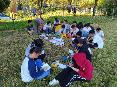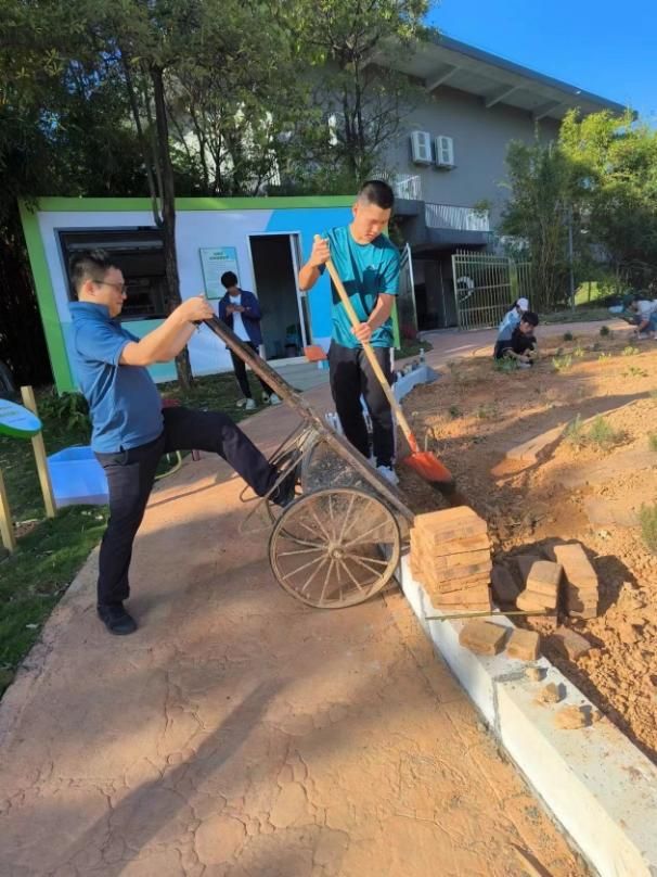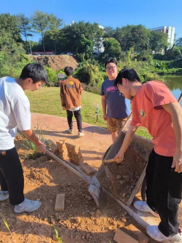 活动开始,李春志老师为大家介绍了学校培根园的大致情况,并交代了当天的主要任务,包括翻土作业、花基翻新以及园艺绘画创作等;接着,刘勉老师也给大家示范了科学劳作的方法。在分配好任务后,各位同学拿起各自的工具,有的在黄土上锄地,有的在花田间做花基翻新,有的在树荫下绘画写生,老师与同学们一同在培根园这块土地共同作业、合作无间,言传身教、劳以育心。大家在劳动过程中互相协作、轮流替换;培根园里,土壤重新焕发生机,田地间出现一幅又一幅画作,大家的脸上充斥着汗水与欢笑。随着一桶又一桶水灌入土地、一块又一块的砖结成花基,今天的活动来到了尾声。太阳也渐渐落下,一张师生合照定格了大家的笑颜,也定格了这次活动的成果。
