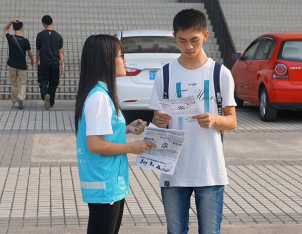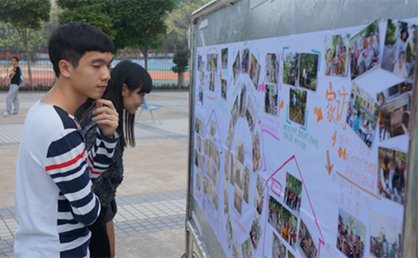 活动开始前,志愿者们与hope工作室人员布置场地,把宣传海报和麻风病康复村的图片仔细粘贴在移动展板上,并且分配好工作。活动进行时,志愿者们热情地向着行人介绍此次活动的意义并带领他们到展板前进行详细的解说。同学们也纷纷在寄语区写下祝福语。志愿者们以独特的宣传方式以及精彩的解说吸引了莘莘学子。有一位同学就告诉工作人员:“我很乐意加入到工作营,看望麻风病康复村里的老人,就像去探望自己的爷爷奶奶一样。”