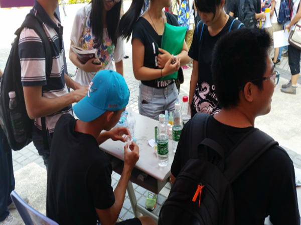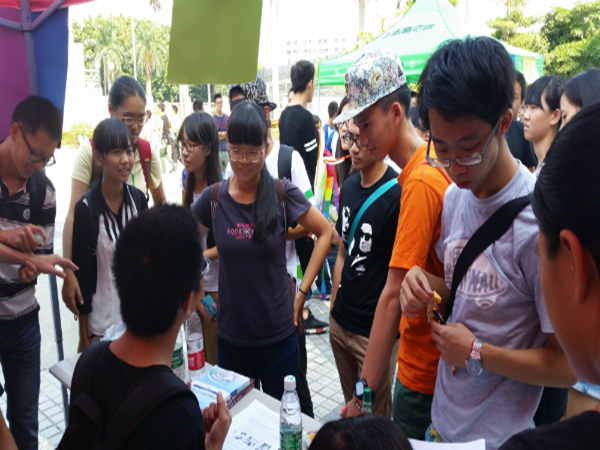 然后,团员干部吴晓雪、徐倩尧等人热情宣传本次主题团支部会议主旨,并结合近日东莞市的传染病病例讲解常见秋冬季节传染病预防基本知识要点。路人认真聆听,不时发出提问。同时团员干部蔡海宁也坐在大本营,认真耐心地讲解传染病知识。