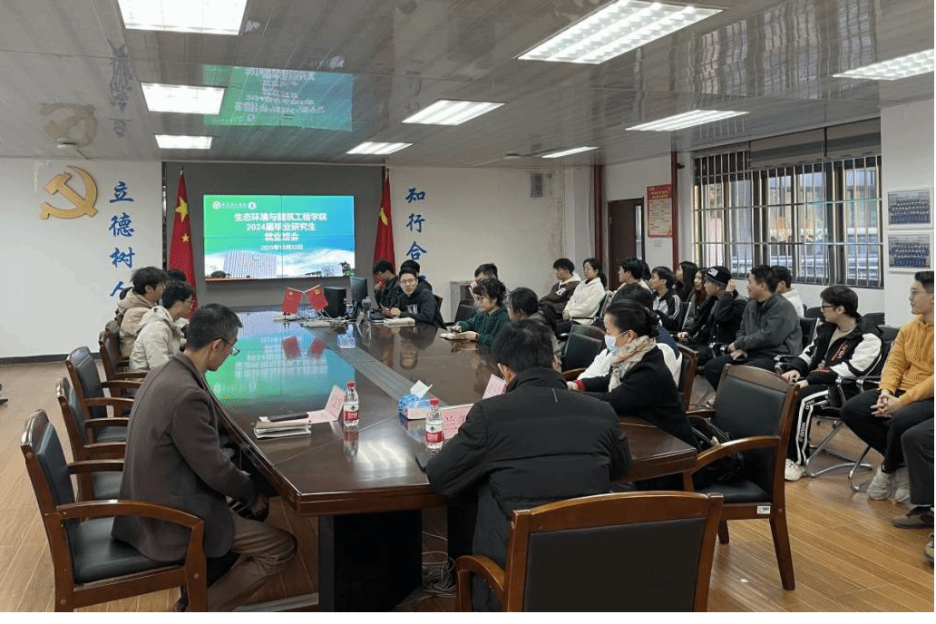 于12月26日在综合实验楼12K205会议室召开2024届毕业生就业年级班会。学院党委书记兰善红、副书记诸小妮、研究生院尹建明老师以及学院2021级全体研究生。年级班会由研究生辅导员胡胜老师主持。
