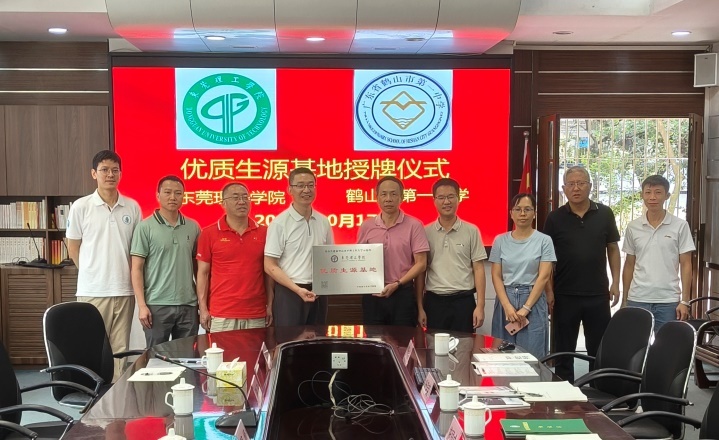 高峰副院长、刘东副教授、黄皖唐博士和丁学升老师一行四人前往鹤山一中出席签约及授牌仪式。鹤山一中党委书记、校长施国成、副校长叶瑞荣、李红英、高三主管行政副主任陈敬远、高三教学级长曹天全出席仪式并对每日大赛