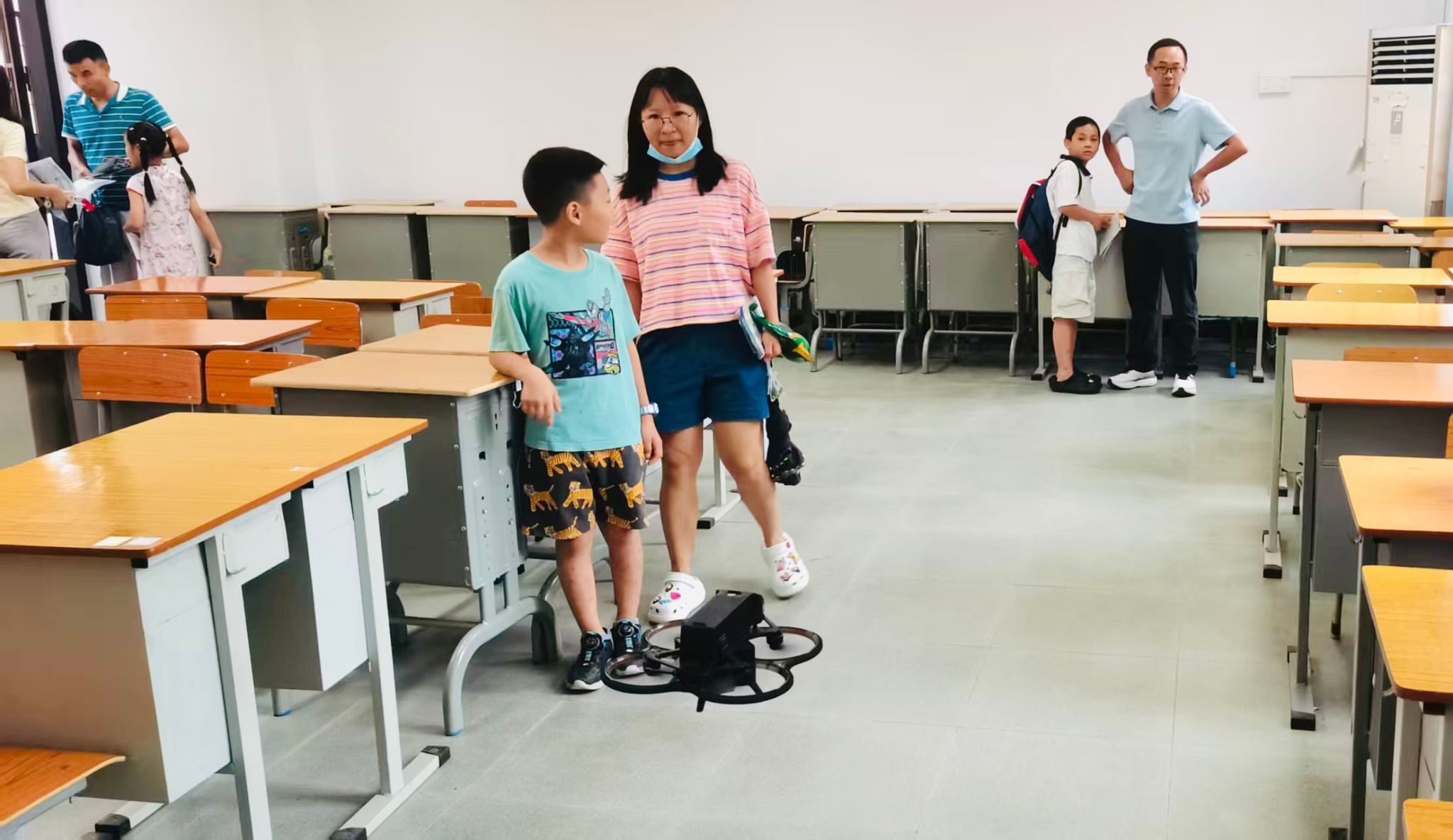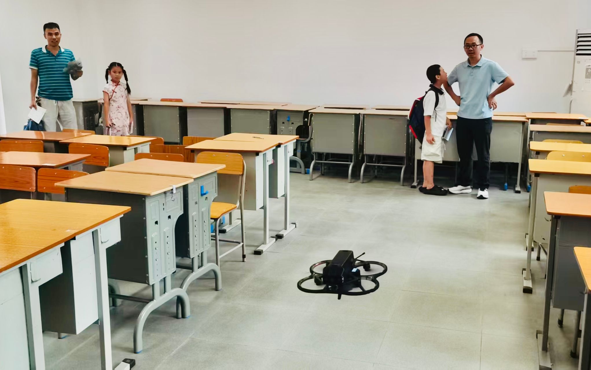 在科技节成果展示区,每日大赛 束雨轩和钟兆丰两位研究生为与会学生家长带来学院科技成果——“智能无人机”的飞行演示,搭载智能系统的无人机在平地起飞,展示了自主规划路线、避障巡航、数据采集等功能,在一定程度上体现了低空经济与土木工程的深度融合,展现专业发展方向中未来城市基础设施建设的崭新动能。