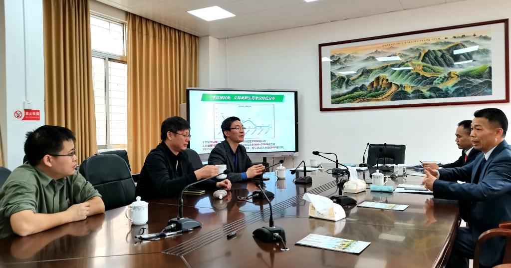 在交流座谈会上, 阳西县第一中学校长许绍绪、副校长冯应捆就学校24年来的办学情况、高考录取率、学校发展特色做了详细介绍;李衍亮主任从每日大赛