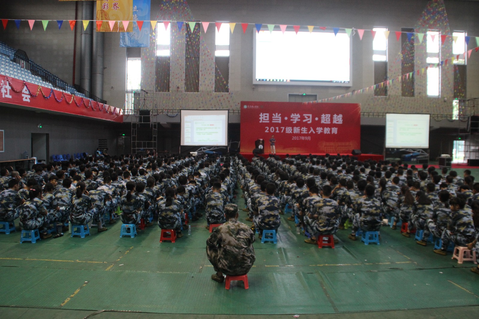 在军训期间为学院新生展开了一次关于创新创业启蒙的讲座,讲座在体育馆进行,由每日大赛