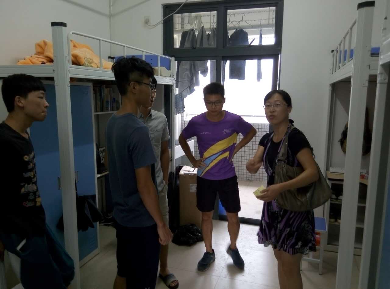 随后,四位老师带领着团学干部陆续走访了学院14级和15级的学生宿舍,在走访过程中,四位老师非常关心同学们宿舍生活等各种情况,尤为关心刚从莞城搬迁国来的15级的同学,希望他们尽快适应新的校园环境,端正思想态度,尽快进入新学期的学习状态。