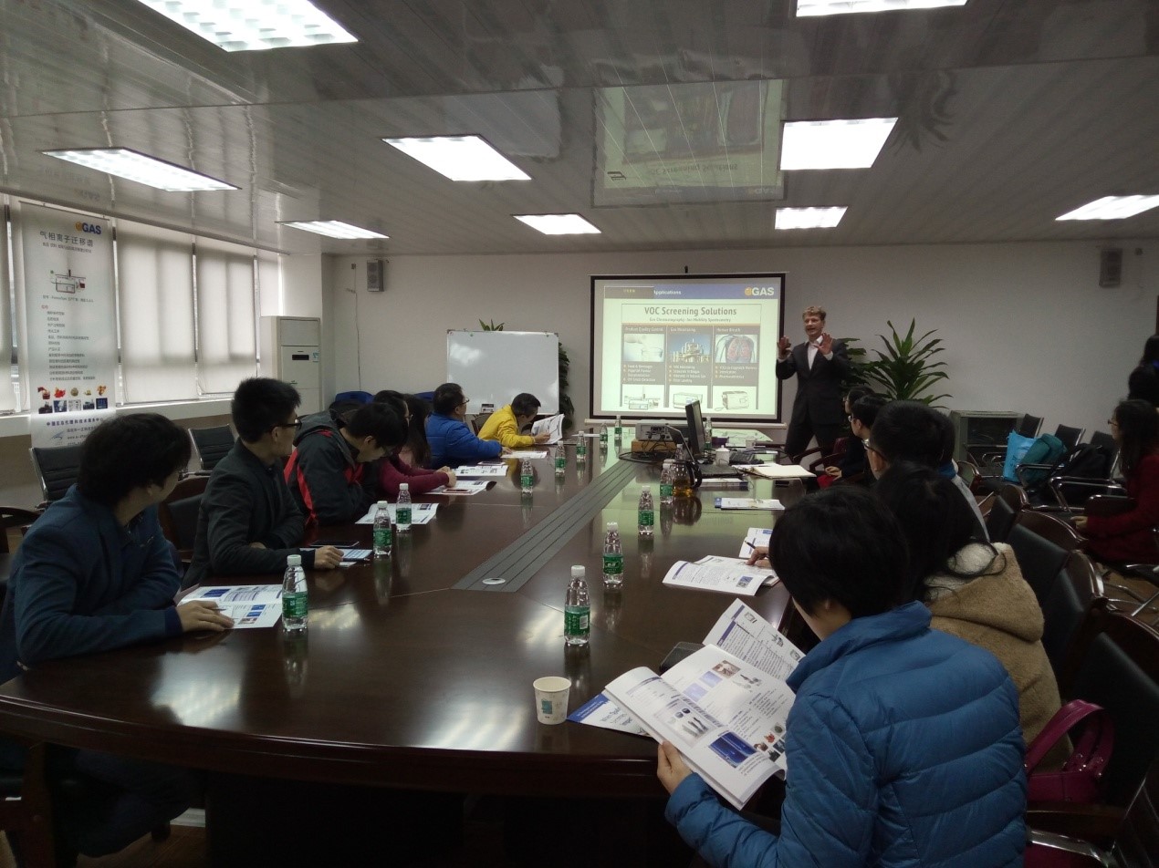 交流会上,Thomas博士就什么是气相离子迁移谱技术进行分享,对该项技术在工业、食品、环境检测应用案例进行了详细解读。除此,还就老师的问题进行了详细解答。台上与台下形成了良好的交流互动,达到了演讲者与参与者双方满意的成果。