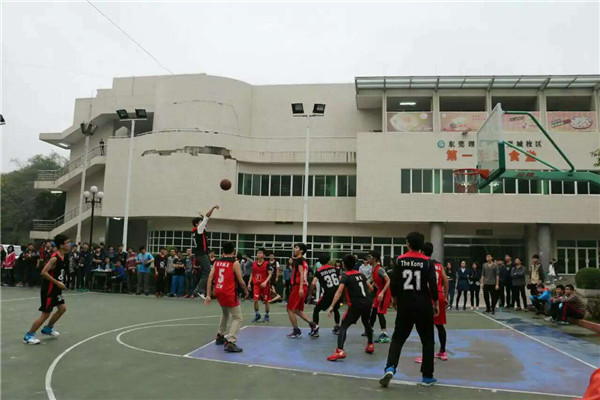 在莞城校区一饭附近的篮球场处举行新生杯第二场比赛,由15高材2班的球员们对战15应化1班,赛况此起彼伏,激动人心。