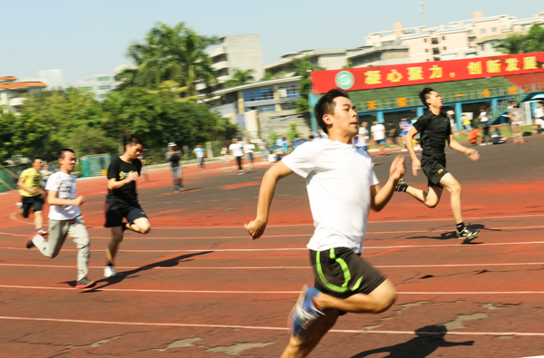 运动员分为男子组和女子组,分别在短跑、长跑、团体接力赛、铅球、跳高、跳远等项目展开角逐。赛场上,运动健儿们激情飞扬、奋力拼搏,主持人追踪播报着比赛进程,热情洋溢地宣读着各班通讯员现场撰写的稿件,整个场面热闹非凡。4×100米混合接力赛在一阵阵的加油声和掌声中把整个运动会推向了高潮。