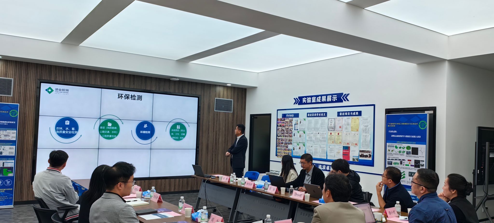 首先,副校长郑愚欢迎建业检测一行来访。会上,广东省城市生命线工程智慧防灾与应急技术重点实验室秘书邸博重点介绍了实验室的团队组成、代表性科研成果、成果转化与应用以及省重点实验室发展规划等情况;随后,建业检测副总经理高永波对公司发展历程、业务范围、资质情况做了详细的介绍。