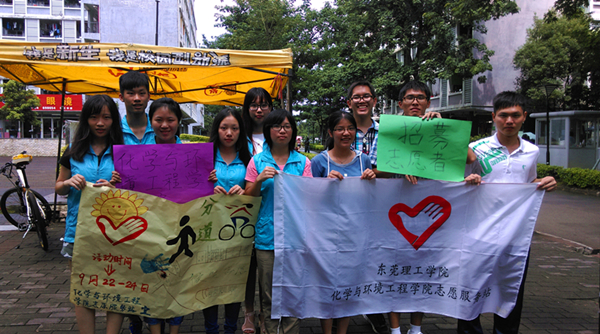 团总支志愿服务站在松山湖校区下沉广场进行“人车分道,微笑志愿”的志愿者招募活动。