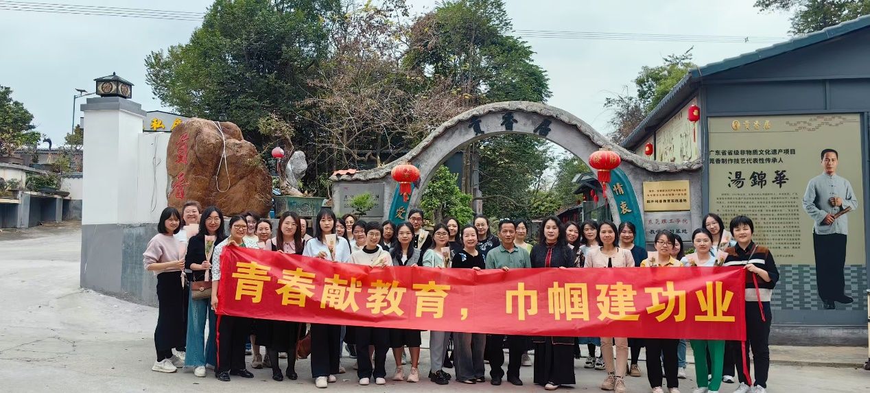 14:30,全体人员移步至鸡翅岭村女儿香文化展馆与女儿香婚俗文化馆。在女儿香文化展厅,鸡翅岭村汤书记热情地为我们介绍广东省莞香的历史文化以及鸡翅岭村独特的女儿香文化传承,明清时期的香炉、百年的沉香木料无不让老师们啧啧称奇,这些都是可以闻的历史文化呀!婚俗馆中“龙凤喜烛”“凤冠霞帔”等传统婚俗器物,则让女教师们感受到岭南婚嫁文化的独特韵味。“琳琅满目的莞香展品生动展现了香文化在岭南民俗中的重要地位,这些展品让我对岭南文化基因有了更深理解。”建筑工程系卢教授表示。