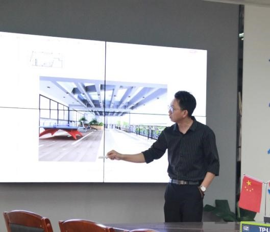 会上,三位参赛学生分别展示了他们的设计方案,对“教工小家”设计的想法。随后,郑汉江对参赛学生的设计作品进行了点评,肯定了参赛学生作品的设计亮点,并提出了修改建议。