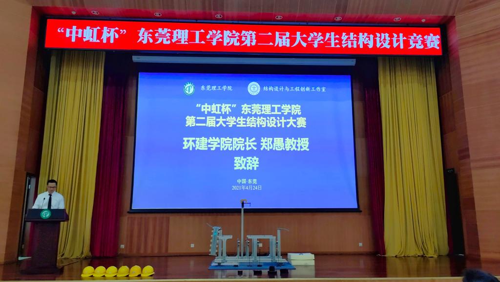 院长郑愚教授为大赛致开幕词,郑院长从创新实践、团队协作、表达沟通、专业知识与技能应用能力培养等多个方面解读了结构设计竞赛对于我校专业人才培养的意义,并对学院师生近年来在广东省乃至全国大学生结构设计竞赛取得的成绩给予了充分肯定,希望广大参赛同学要借助竞赛促进交流,学好专业知识,勇于担当,敢于超越,再创佳绩。随后土木工程系主任艾心荧副教授致辞并宣布竞赛开始。