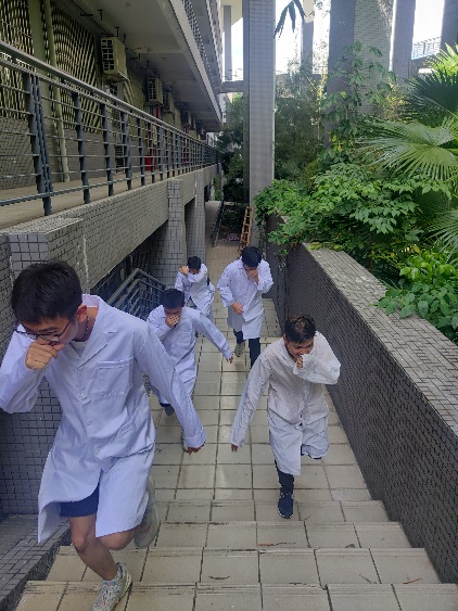 图2 指导老师指挥学生快速有序朝紧急疏散集合点疏散