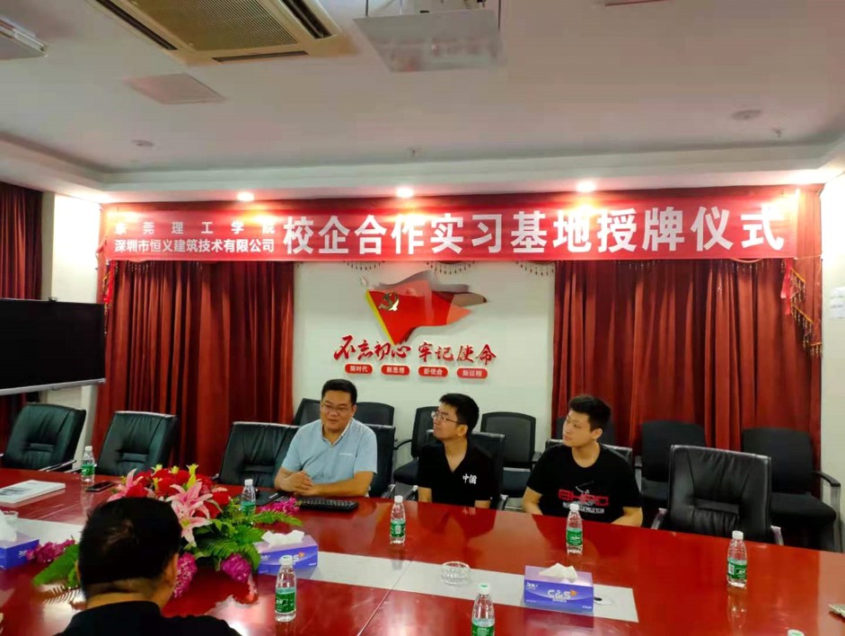 教学实习基地”在深圳市恒义建筑技术有限公司正式成立!希望在今后,双方秉承着相互协作、资源共享、共同发展的原则,发挥各自的资源优势进行强强联合,实现企业与院校的共同进步!