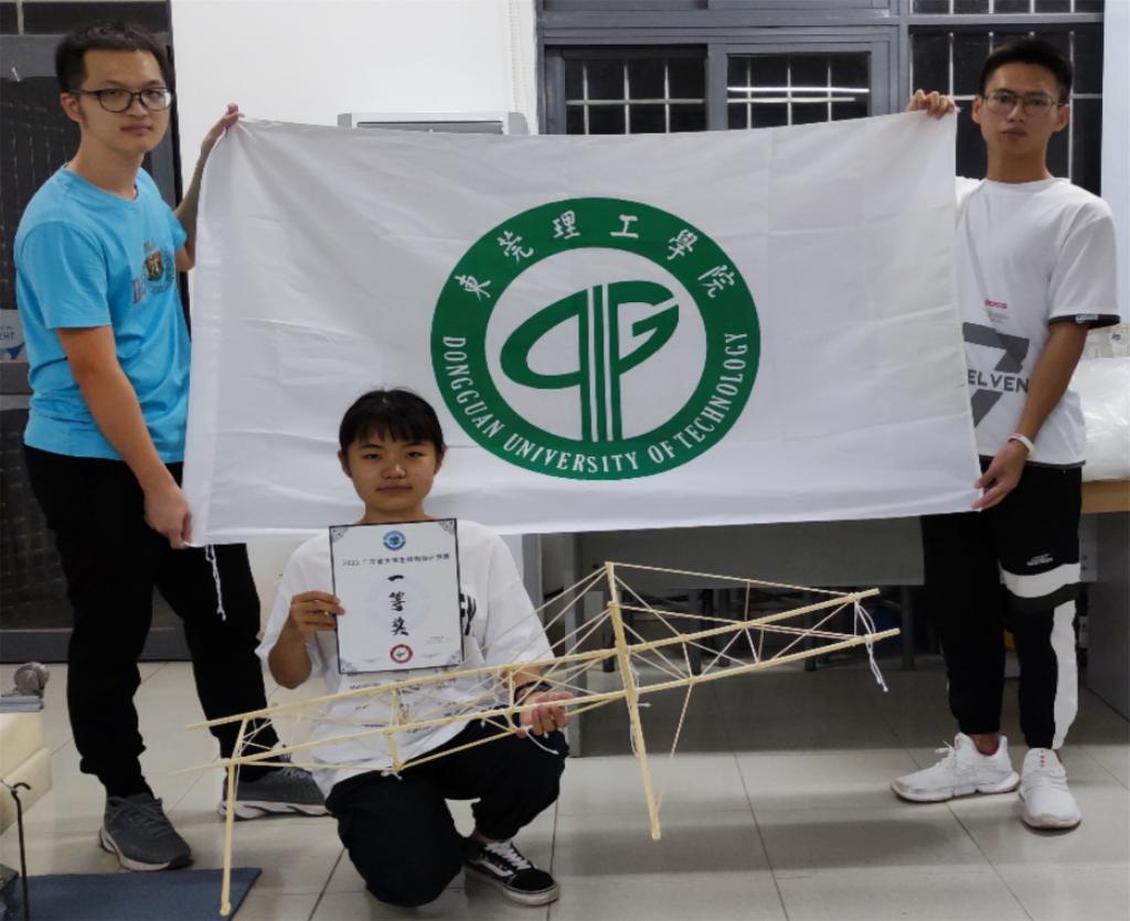 一队的蔡梓涛、蔡明锦、谢嘉茵制作的结构模型“碧色苍穹”获得本次省赛一等奖(总分第6名)。基于这一优异成绩,我校将获得参加今年10月在上海交通大学举行的第十四届全国大学生结构设计竞赛的资格。