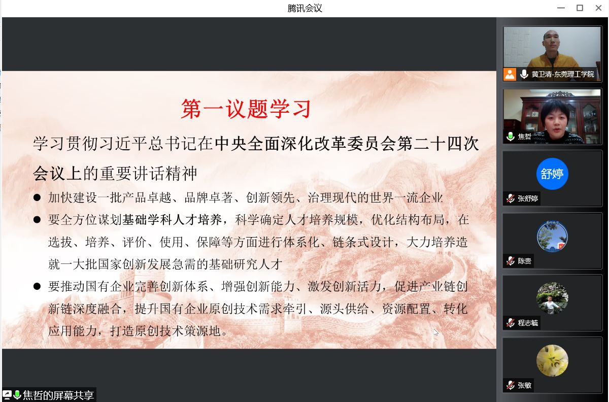 前期,党员同志们自主学习了《习近平总书记教育重要论述讲义》,中共中央国务院《关于加强和改进新形势下高校思想政治工作的意见》,教育部《高等学校课程思政建设指导纲要》等文件精神。会议首先由党支部书记焦哲同志带领党支部全体党员进行“第一议题”学习,针对习近平总书记在中央全面深化改革委员会第二十四次会议上关于“要全方位谋划基础学科人才培养,科学确定人才培养规模,优化结构布局,在选拔、培养、评价、使用、保障等方面进行体系化、链条式设计,大力培养造就一大批国家创新发展急需的基础研究人才”的重要讲话精神进行了深刻学习。其次党支部全体党员针对课程思政质量提升进行了探讨。