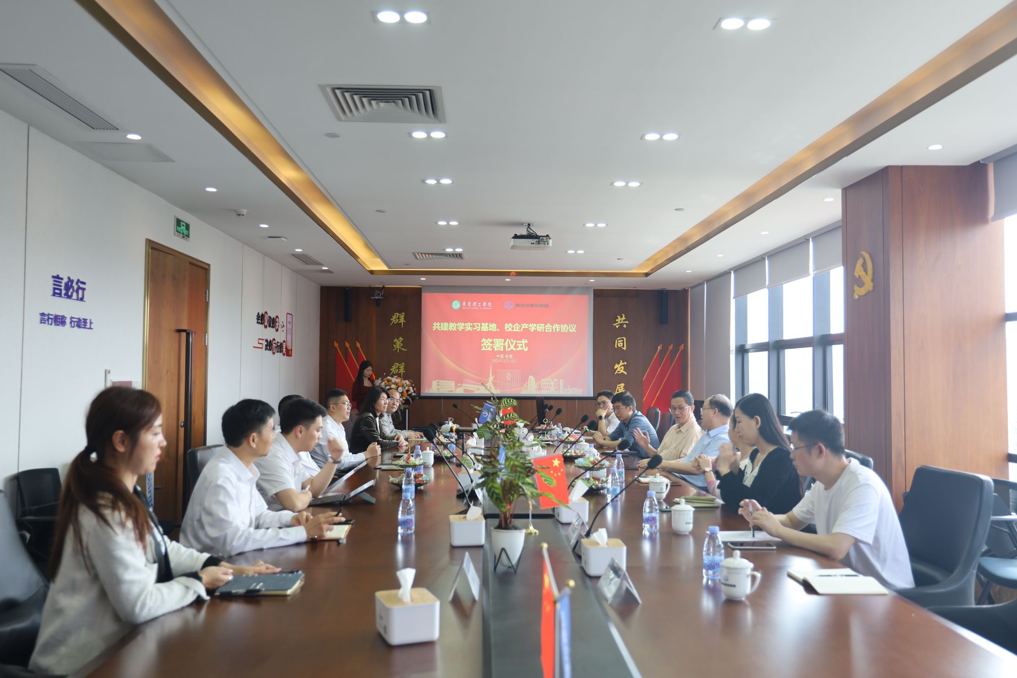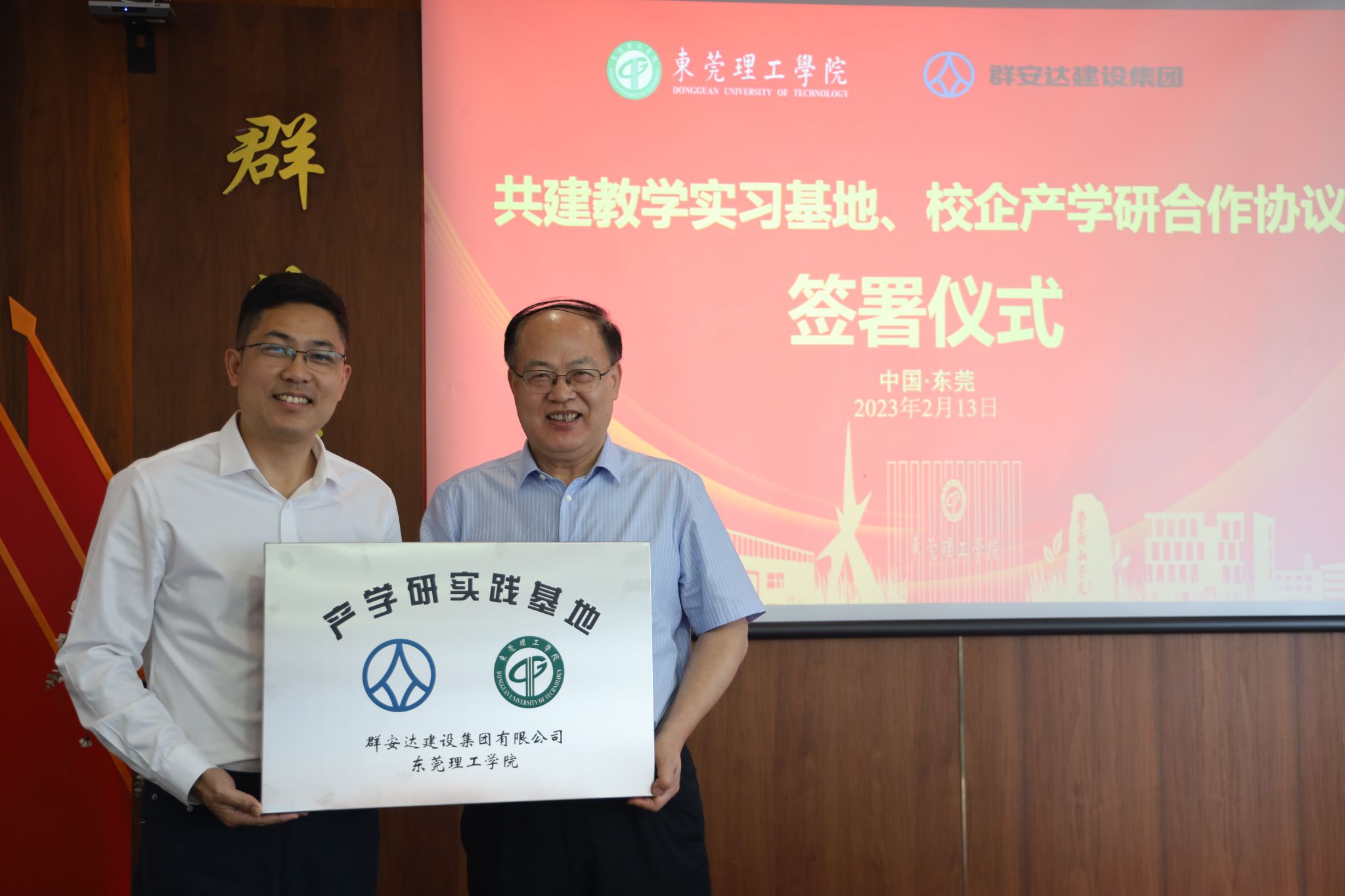 与群安达建设集团有限公司校企产学研合作签约暨授牌仪式在东莞凤岗天安数码城群安达总部顺利举行。我校科学技术处、社会科学处处长范洪波教授、每日大赛
