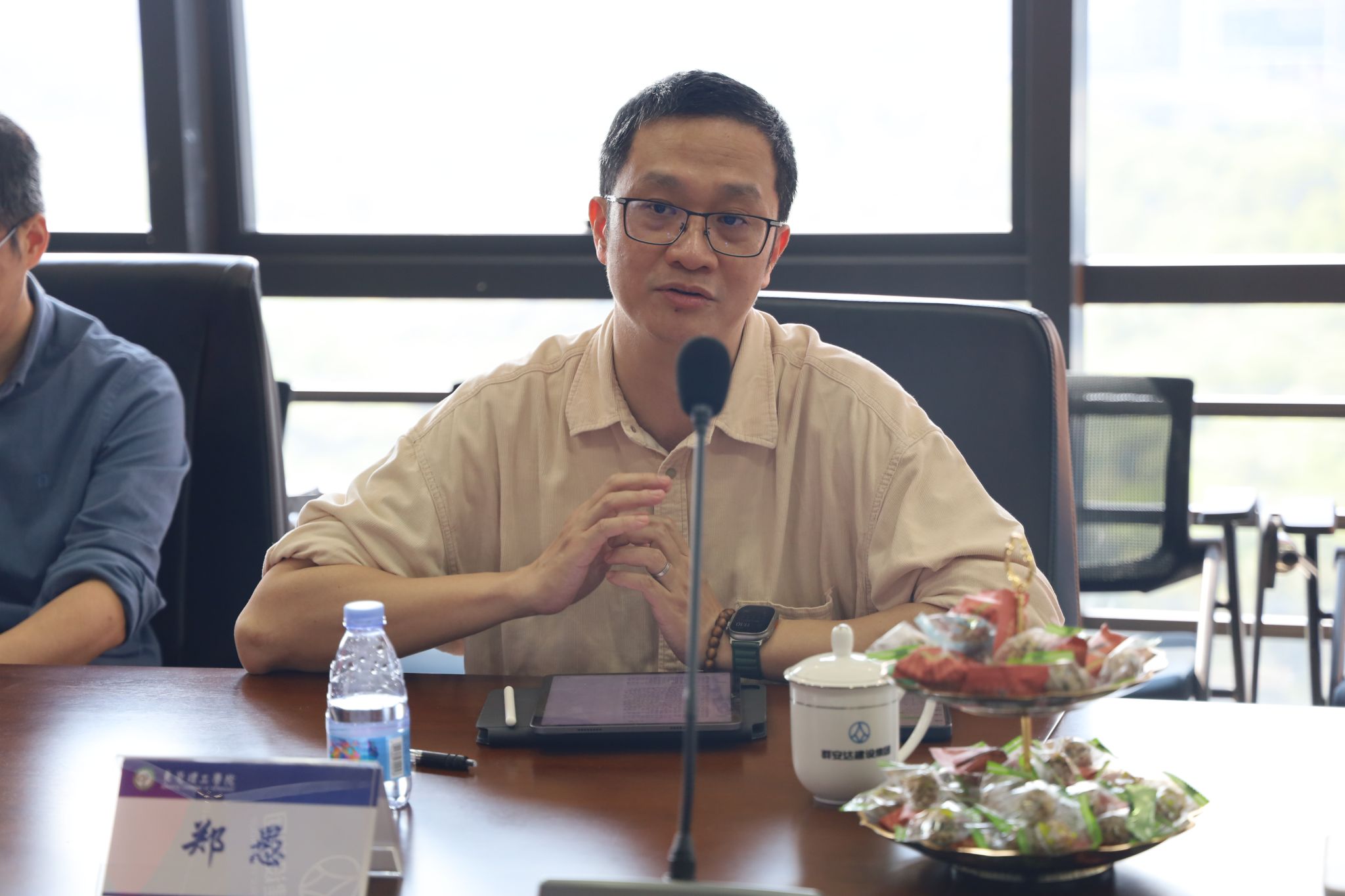 、群安达建设集团的发展历程及光辉业绩;同时,郑愚院长向企业介绍了学校及院系的相关办学情况。