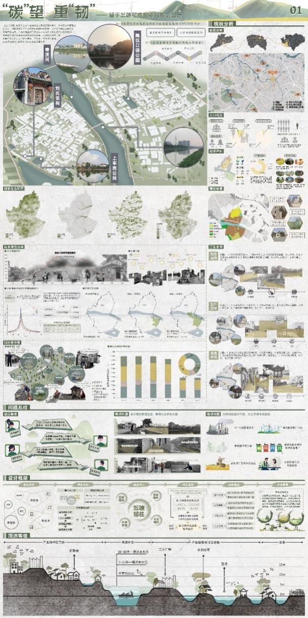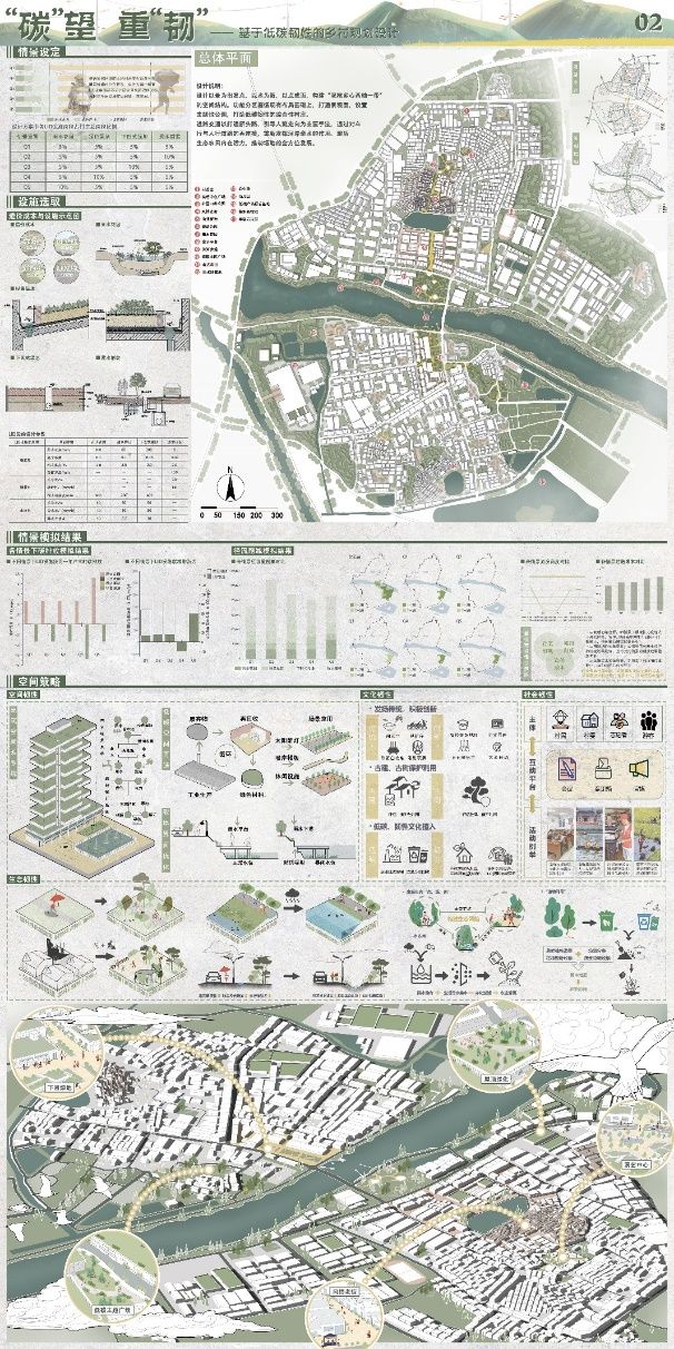 积极组建队伍参与其中,由荣戗戗副研究员、岳文淙研究员带领的学院研究生参赛团队作品“‘碳’望、‘重’韧——基于低碳韧性的乡村规划设计”荣获规划类高校组二等奖。