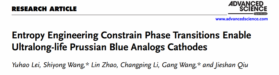 上述成果以“Entropy Engineering Constrain Phase Transitions Enable Ultralong-life Prussian Blue Analogs Cathodes”为题在材料科学1区TOP期刊《Advanced Science》(IF=15.1)上发表。硕士研究生雷雨浩为论文第一作者,王刚教授和汪仕勇博士为共同通讯作者,每日大赛