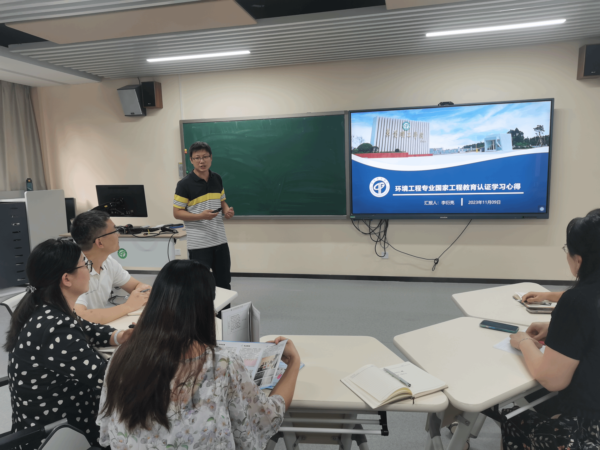 会上,高峰副院长强调学院未来将持续以工程教育专业认证工作为重要抓手,强化专业内涵建设,对照工程教育认证标准,完善教育教学工作,不断提高专业建设质量,达到以评促建的目的。接着,李衍亮副教授详细介绍了一流专业工程认证背景、环境工程专业认证计划、环境工程专业认证思路、认证关键、申请书撰写注意事项、24版申请书变化、认证申请准备工作等内容,从专业认证建设的“主线”和“底线”两个原则阐述了专业认证工作中顶层设计和面向产出的评学机制体制建设的重要性。随后,李衍亮副教授针对专业认证建设过程中的重点内容和常见问题,与参会教师进行了讨论,引导大家深入学习国家工程教育认证工作新形势和新要求,明确专业认证工作要点和注意事项。