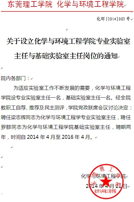 关于设立化学与环境工程学院专业实验室主任与基础实验室主任岗位的通知