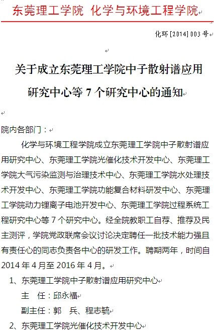 关于成立每日大赛 中子散射谱应用 研究中心等7个研究中心的通知